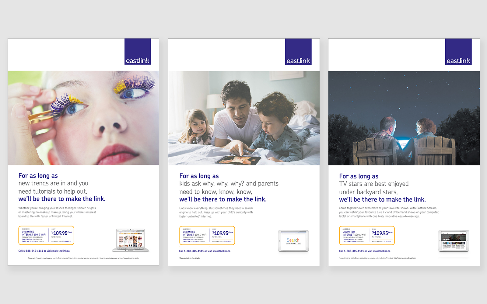 Eastlink empowers Canadians with cable, Internet, telephone services and even security. As a leader in the industry, they’re always on the cusp of new technology. But when it came to growing their customer base, they needed a campaign that would showoff the sophistication of their latest innovation and have the heart to match. So we showed the humanity behind the desire to stay connected. And with it, the promise that wherever people needed to come together– from community film nights to parents face-timing with their kids overseas – Eastlink would be there to make the link.